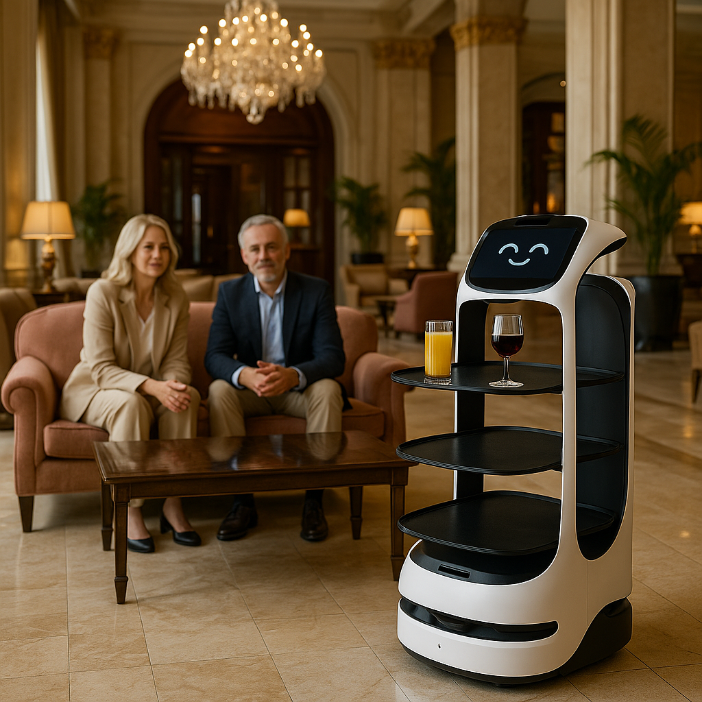Dans l’hôtellerie, les robots assistants sont déployés pour des services tels que la livraison en chambre, le guidage des clients ou le nettoyage des espaces communs.